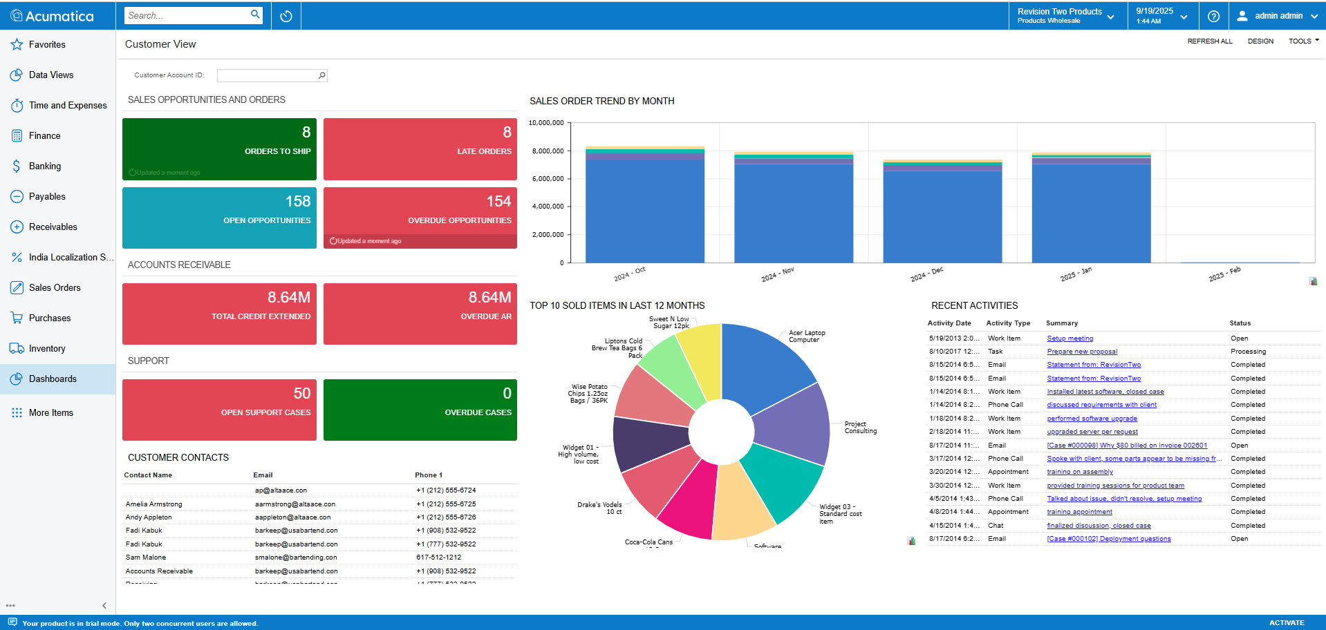Acumatica brings every part of your business into perfect alignment. Information moves cleanly across sales, finance, and operations, removing the delays and manual fixes that slow teams down. Built-in automations and AI insights keep processes efficient and margins healthy. With low-code customization and open APIs, the system adapts quickly and connects seamlessly with your broader ecosystem — keeping your business running with clarity, speed, and confidence.