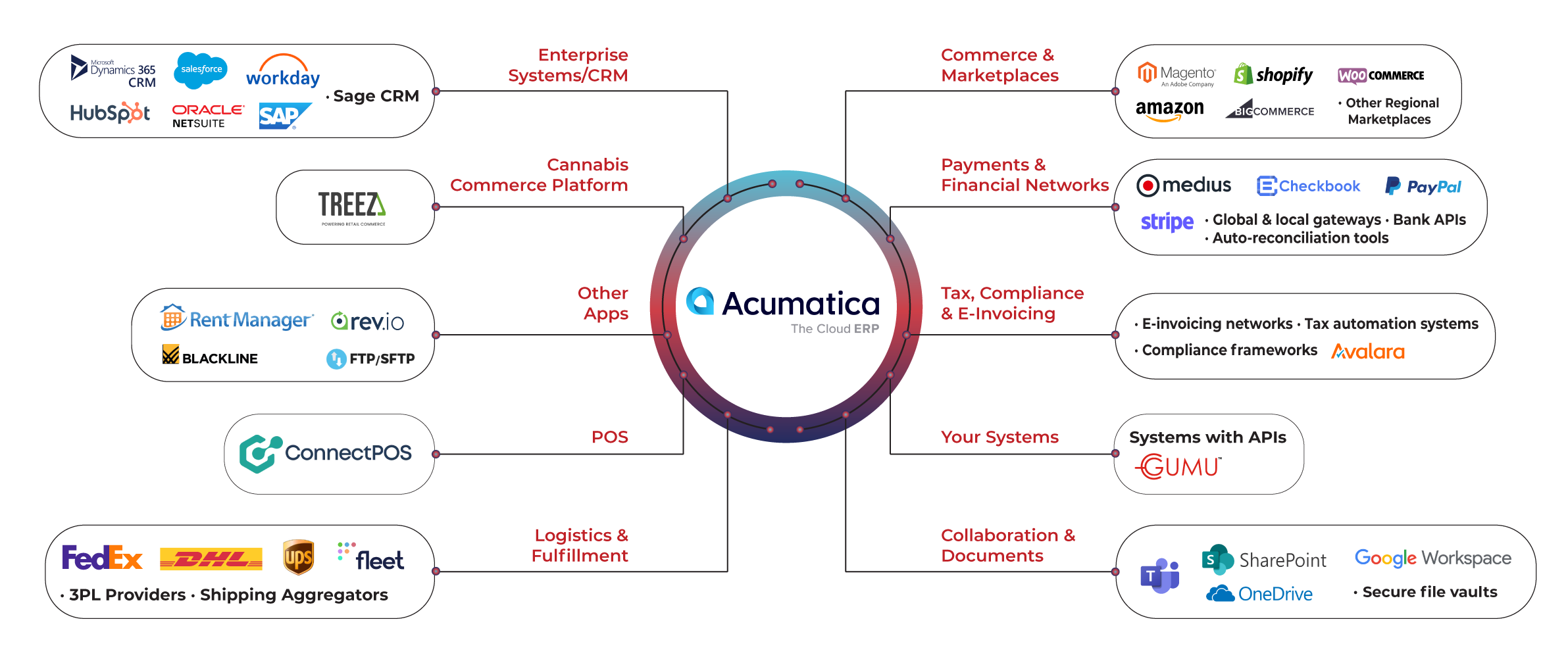 We enable efficient and end-to-end integrations services for Acumatica with CRM systems, third-party apps and e-commerce businesses through our unique native cloud connector GUMU™.